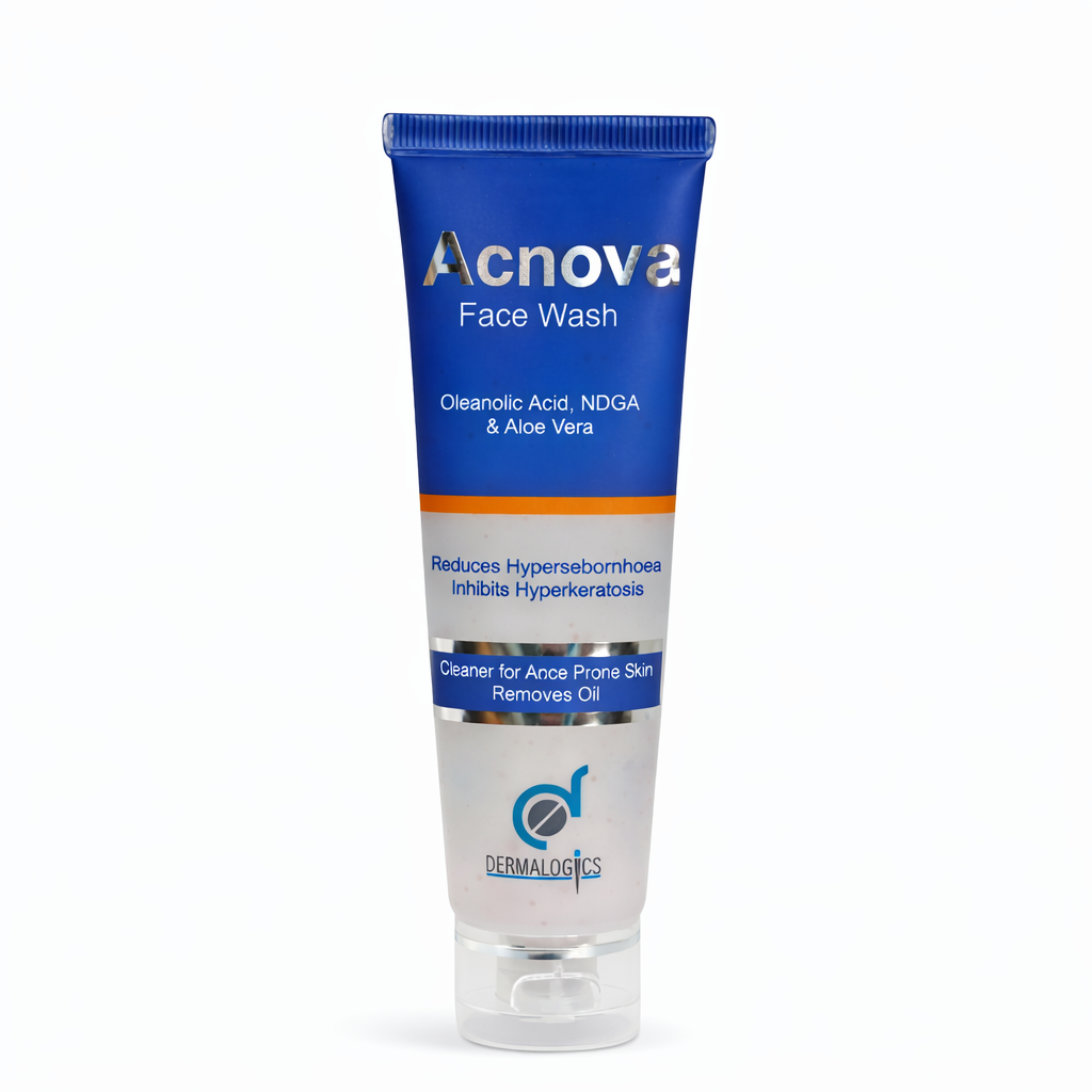 Acnova Facewash is a targeted daily cleanser formulated for acne-prone and oily skin. Powered by Oleanolic Acid, NDGA, and Aloe Vera, it helps reduce excess sebum (hyperseborrhoea) and supports healthy skin renewal by inhibiting hyperkeratosis, one of the key contributors to clogged pores and breakouts.