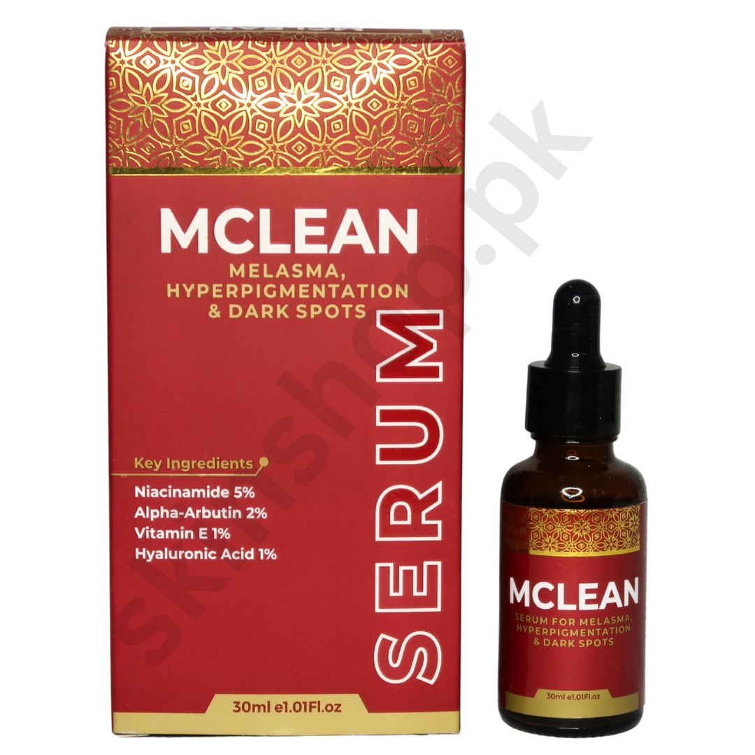Mclean Serum containing 5% niacinamide 2% alpha arbutin is a perfect everyday exfoliant for melasma, dark spots & hyperpigmentation. Hyaluronic Acid helps to retain moisture & maintain the skin barrier for a youtful glow.